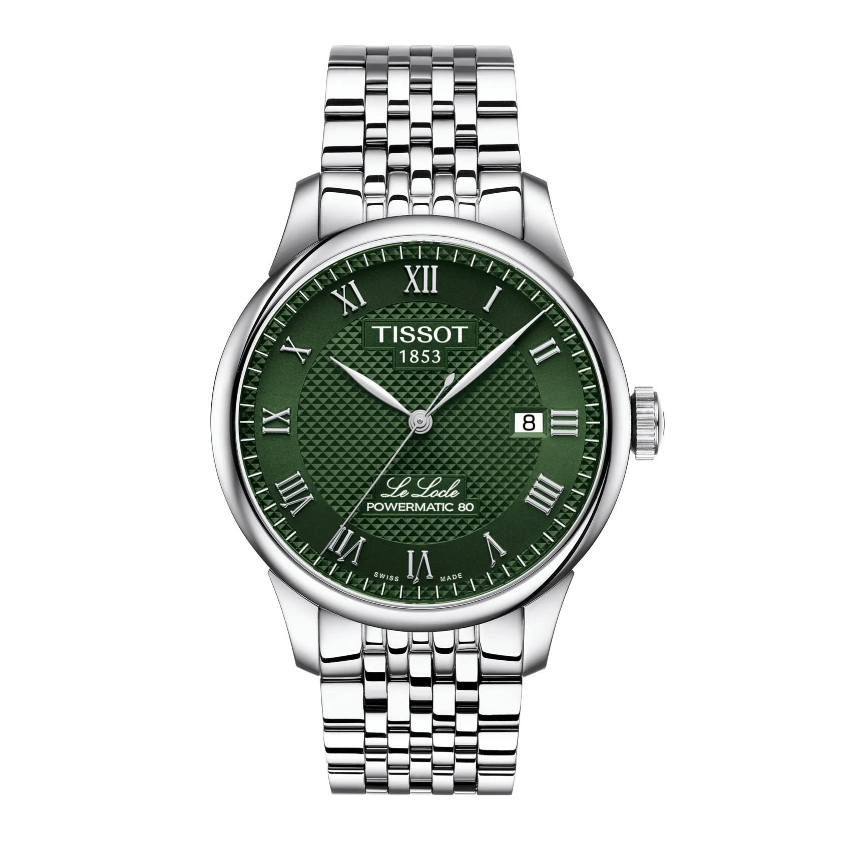 The Le Locle collection was first introduced in 2003 to commemorate the 150th anniversary of Tissot. This watch is a piece of history, embodying the spirit of innovation that has defined our brand for over a century. This model features a green dial and is equipped with interchangeable quick-release bracelets. All Le Locle watches feature the beautiful clous de Paris “guilloche” dial in the form of small pyramids: a detail that really makes the difference. The interplay of polished and brushed finishes on the links creates a captivating visual rhythm, catching the light with every movement. This watch embodies the charm of Swiss heritage, with the name "Le Locle," inscribed in italics on the face, adding a sophisticated touch to the design. The latest model features cutting-edge Nivachron Spring Balance technology, which significantly mitigates the effects of magnetic fields while also being resistant to shocks, aging, and temperature variations.