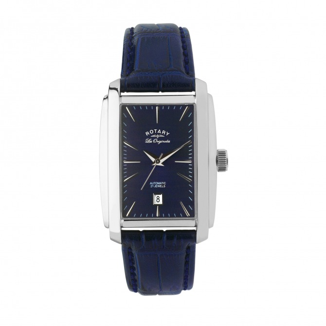 This handsome Gents Rotary watch from their Les Originales range is produced from stainless steel and is powered by an automatic movement. The Watch is fastened with a blue leather strap & has a blue dial. The watch has a date function.
