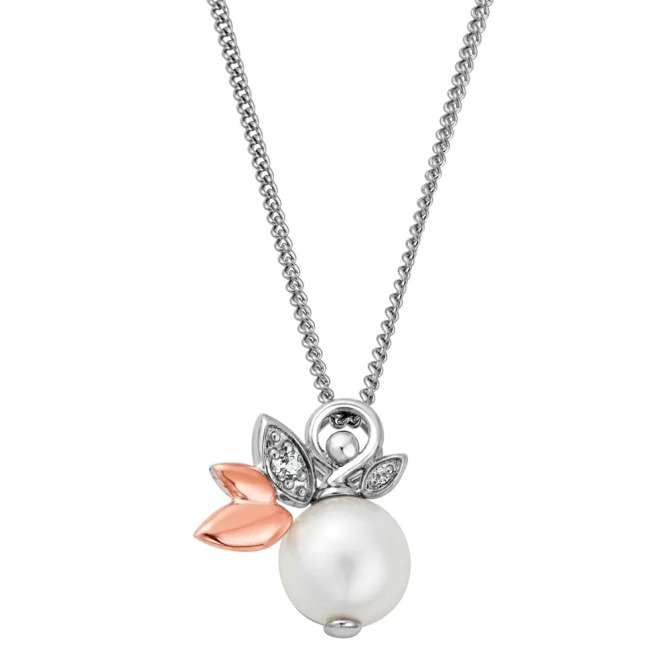 The sterling silver pendant showcases a lustrous freshwater pearl adorned with dazzling white topaz gemstones & 9ct rose gold leaves. A romantic yet playful design, the Lily of the Valley Pearl Pendant represents the trustworthiness associated with the pretty woodland flower.