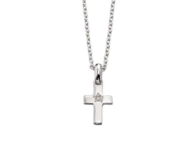This diamond necklace is set with Cosmo’s Little Star. A classic cross design ideal to commemorate a christening or 1st birthday but with added diamond sparkle.