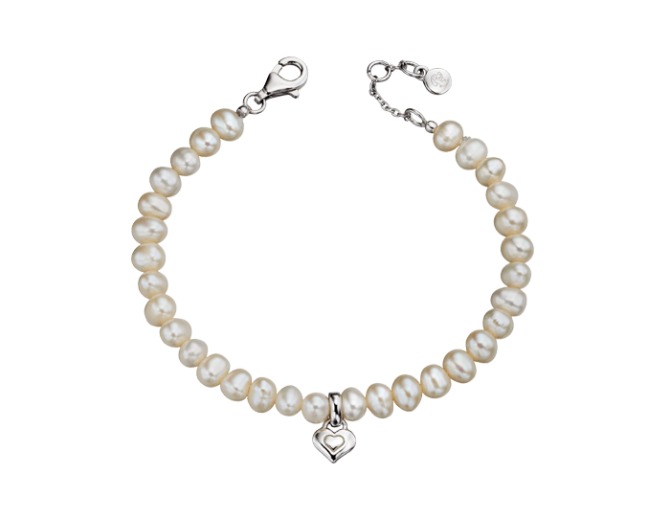 An elegant freshwater pearl bracelet with a silver heart, perfect for bridesmaids and little flower girls. Also a fantastic gift for a child with a June Birthday.