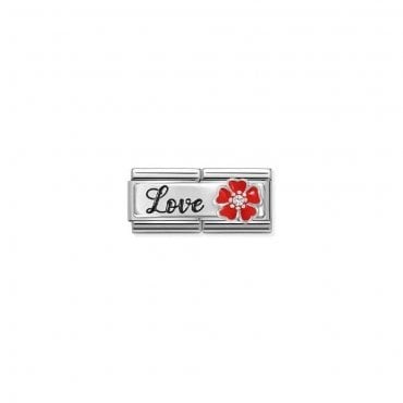 Original Nomination Classic Double Link in stainless steel with sterling silver Plate with LOVE with Red Flower. This Link is decorated on one side with a Red enamel flower with a White Cubic Zirconia detail. Get a smile from someone you love this romantic and joyful Link.