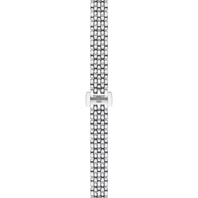 This model features a 316L stainless steel case. A diamond forms the hour markers at 12, 3, 6 and 9 o'clock. The watch also features a bezel set with an additional 42 diamonds for sparkling brilliance. The solid yet flexible 316L stainless steel bracelet holds the Tissot Lovely elegantly and securely on the wrist.