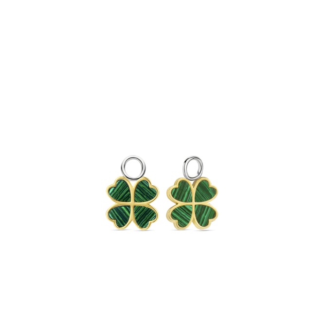 These TI SENTO clover ear charms 9258MA flaunt malachite green stones handset in gold-plated settings. Crafted from the highest quality 925 sterling silver, they are plated with yellow gold. Hang these charms to your favourite hoops and luck will surely be on your side. Decorate your ears with these colourful charms for a funky Ear Party. They are completely nickel-free and hypoallergenic.