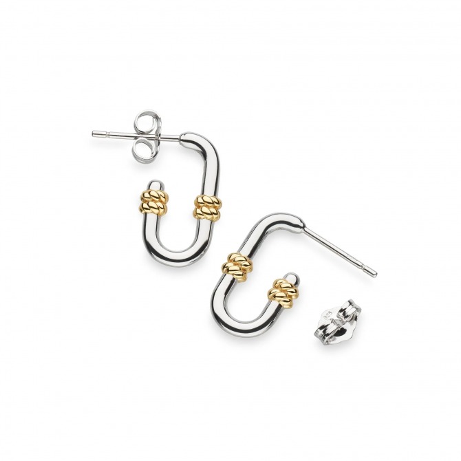 The Marina Rope Bar Link Golden hoop earrings are a modern take on our seafaring roots. Drawing inspiration from our deep-rooted connection to the sea, the earrings resemble chain links coiled with intricately twisting rope, featuring elements of nautical elegance intertwined with modern sophistication. The 18ct gold plated finishes add a touch of luxury and brightness, creating a vibrant contrast to the sterling silver design.