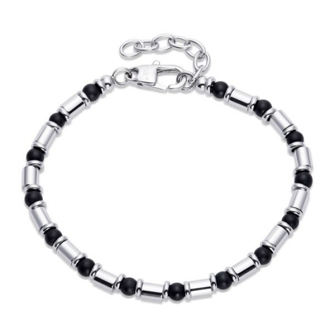 Matt Black Bead & Stainless Steel Bracelet 21cm