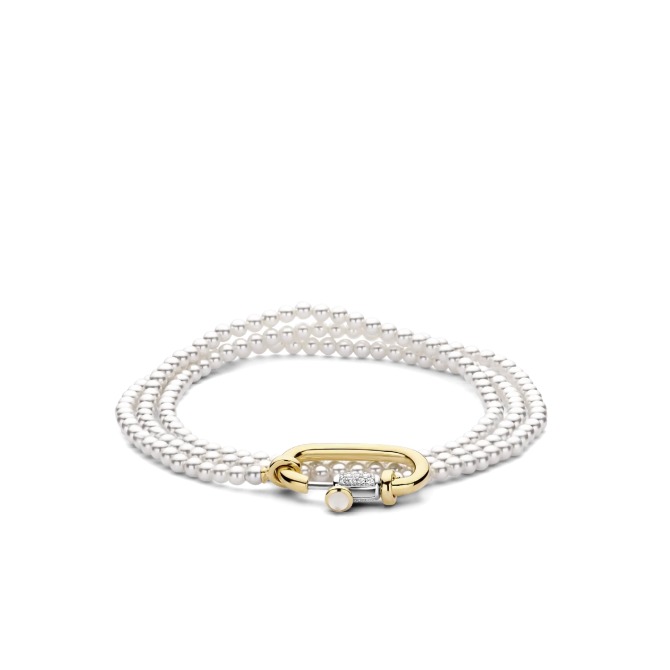 This TI SENTO - Milano gold-plated silver bracelet 2976PW flaunts two streams of lustrous white pearls held together by our iconic gold-plated signature lock. The gold-plated lock is crafted from 925 sterling silver and is designed to keep this piece with you all the time. Its glowing white tones are unmistakably sophisticated. A sophisticated statement piece that will give a touch of timeless elegance to any outfit.