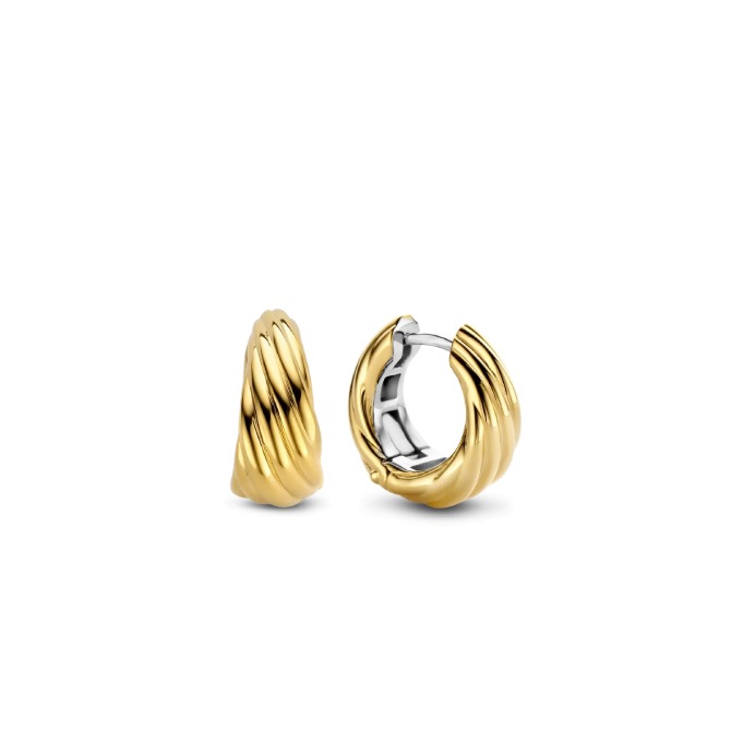 These TI SENTO - Milano gold-plated silver hoops 7856SY flaunt elegant twisted lines. Their distinctive drop shape makes them an eye-catching basic. These earrings are crafted from 925 sterling silver. Carry their golden glow wherever you go.