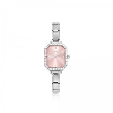 Stainless steel bracelet with rose PVD details and White crystal pavé and Letter T symbol. Length 19 cm, shortens to 14 cm. Pendant size: 1.2x1.2 cm. Made in PRC.Declare your love with something precious.