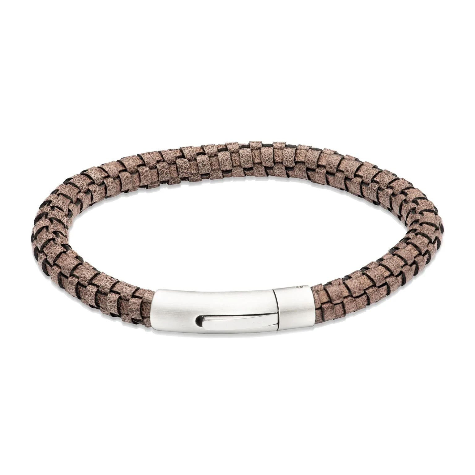 Moro brown leather gents bracelet with a polished stainless steel clasp.