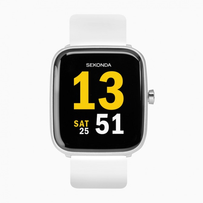 Everyday Smart. Everyday Style. Sekonda’s Motion smart watch has a silver plastic case with a fully interactive, 1.4 inch LCD screen dial and is fastened with a 20mm white silicone strap. Features include steps/calorie/distance tracker, sleep monitor, push notifications for messages, 5 sports modes & long battery life, up to 10 days depending on use! The watch has a water resistance rating of IP68. This means that the watch is splashproof and showerproof but not recommended for swimming or watersports. Smart Watch. Smart choice.