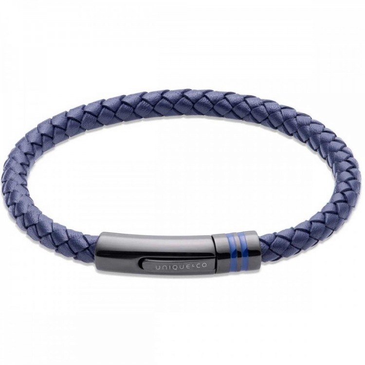Add some on trend style to your collection with this gents leather bracelet from Unique Jewellery, crafted with black leather finished with a black IP plated stainless steel clasp with Blue Enamel inlay.