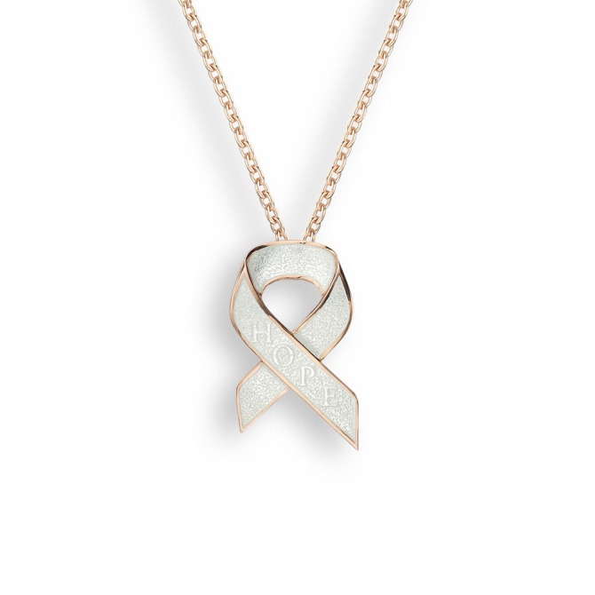 White Hope Ribbon Necklace in Sterling Silver with Rose Gold Plate and Vitreous Enamel