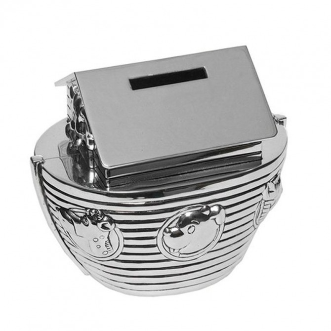The real silver plated money box offers great attention to detail which perfectly captures the charm of loveable Noahs Ark. It features a smooth finish, complete with large money slot for saving coins & easy-to-remove rubber bung on the base.