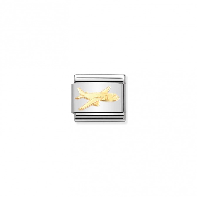 Original Nomination Classic Link in stainless steel and 18K yellow gold with Airplane symbol. Made in Italy. Are you dreaming of taking off to some far off destination? Keep your travel dreams alive and with you with this Airplane Link on your bracelet.