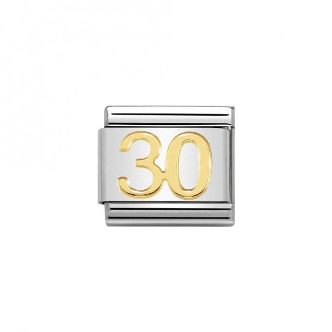Original Nomination Classic Composable bracelet in Steel and number 30 in bonded yellow gold. Made in Italy. The bracelet to celebrate the thirtieth birthday.