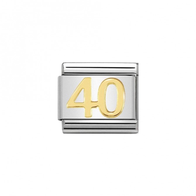 Original Nomination Classic Composable bracelet in Steel and number 40 in bonded yellow gold. Made in Italy. The bracelet to give to an important person for their fortieth birthday.