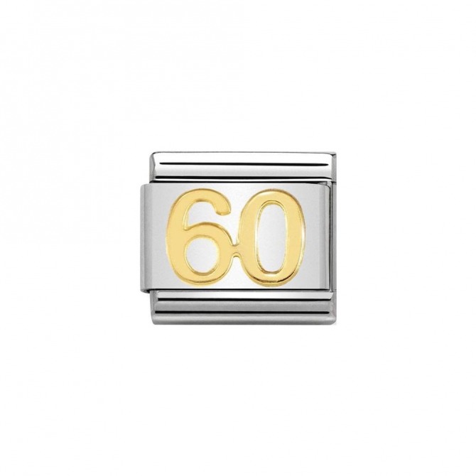 Original Nomination Classic Composable bracelet in Steel and number 60 in bonded yellow gold. Made in Italy. The bracelet to celebrate this great Birthday Milestone.