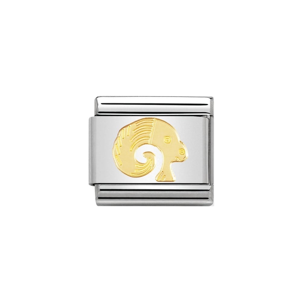 Original Zodiac Charm for Nomination's Composable Classic Bracelet with Aries symbol in stainless steel and bonded yellow gold. All Zodiac symbols are available. Made in Italy. Aries is a fire sign: Brave, independent, enthusiastic.