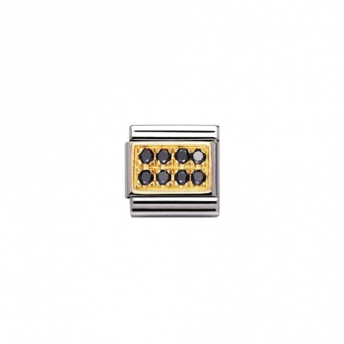 Original Charm for Nomination's Composable Classic Bracelet in stainless steel, bonded 18ct yellow gold and black Cubic Zirconia. Made in Italy. Perfect for the chic and sophisticated woman.
