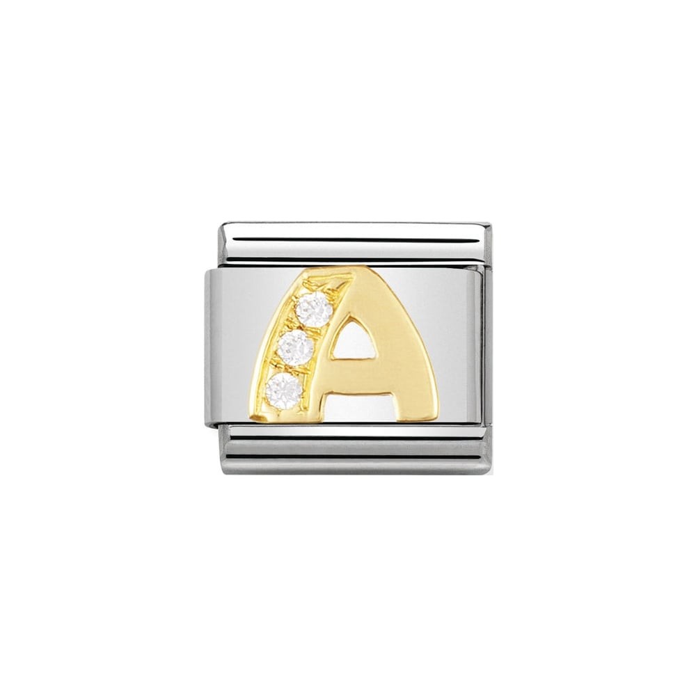 Original Charm with Alphabet symbols for Composable Classic Bracelet in stainless steel. Details in bonded yellow gold and Cubic Zirconia. Made in Italy. Personalise your bracelet with your initial.