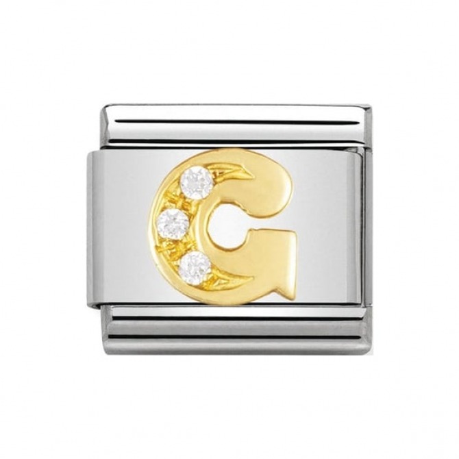 Original Charm for Composable Classic Bracelet in stainless steel, bonded yellow gold and Cubic Zirconia with Alphabet symbols. Made in Italy. Give your initials to the people you love.