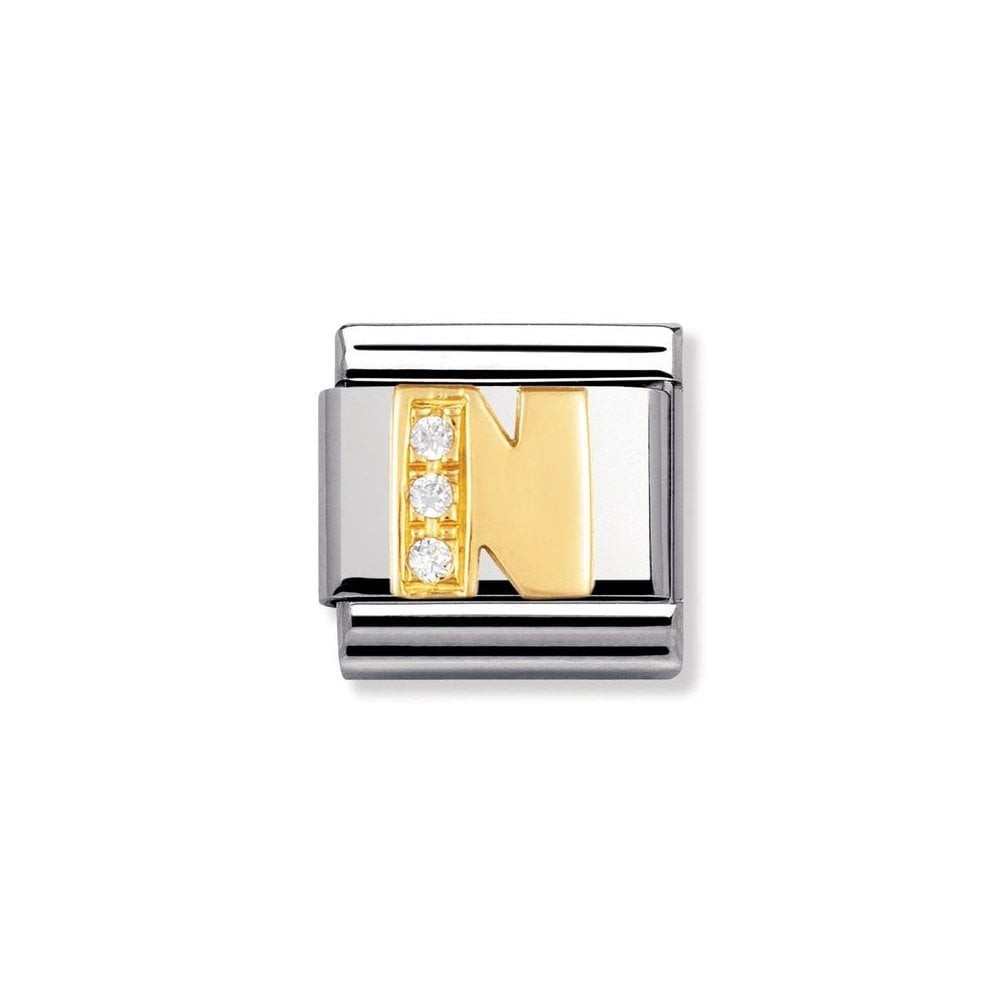 Original Charm for Classic Bracelet with Alphabet symbols in stainless steel. Details in bonded yellow gold and Cubic Zirconia. Made in Italy. Add your loved one's initials to your bracelet!