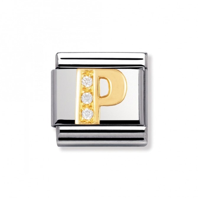 Original Charm for Composable Classic Bracelet in stainless steel, bonded yellow gold and Cubic Zirconia with Alphabet symbols. Made in Italy. Give your initials to the people you love.