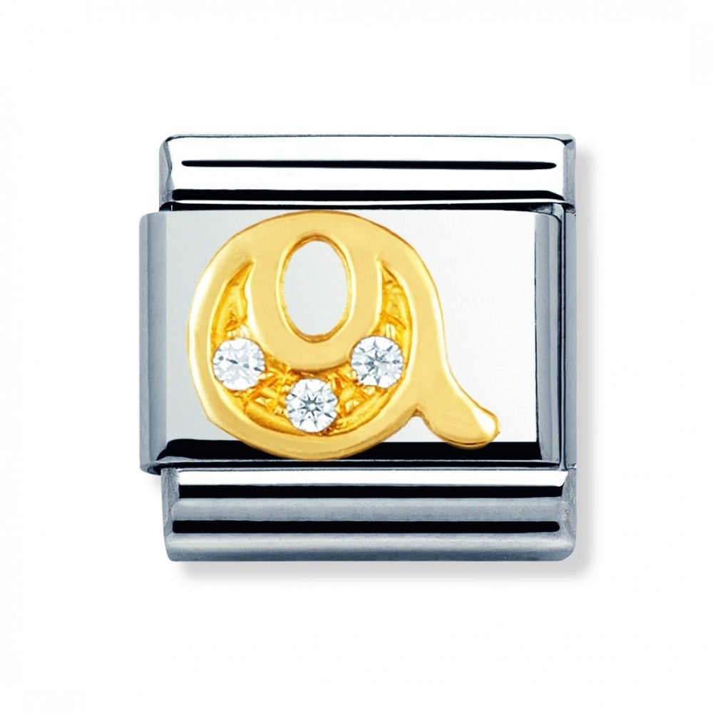 Original Charm for Nomination's Classic Composable Bracelet in stainless steel, bonded yellow gold and Cubic Zirconia. All Alphabet symbols are available. Made in Italy. Personalise your bracelet with your initial.