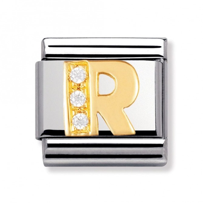 Original Charm for Nomination's Classic Composable Bracelet in stainless steel, bonded yellow gold and Cubic Zirconia. All Alphabet symbols are available. Made in Italy. Personalise your bracelet with your initial.