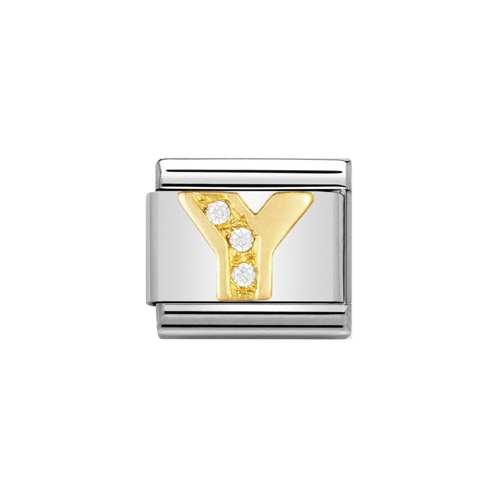 Original Charm for Classic Bracelet in stainless steel with Alphabet symbols. Details in bonded yellow gold and Cubic Zirconia. Made in Italy. Personalise your bracelet with your initials.