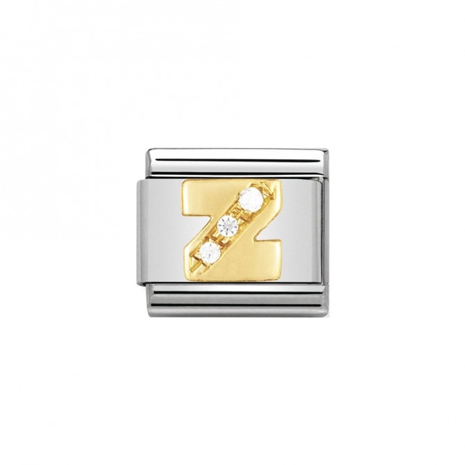 Original Charm for Classic Bracelet in stainless steel with Alphabet symbols. Details in bonded yellow gold and Cubic Zirconia. Made in Italy. Personalise your bracelet with your initials.