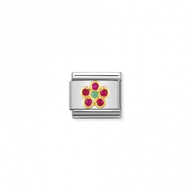 Original Charm for Nomination's Composable Classic Bracelet in stainless steel, bonded yellow gold and Cubic Zirconia with red and green Flower symbol. Made in Italy. The perfect Christmas gift.