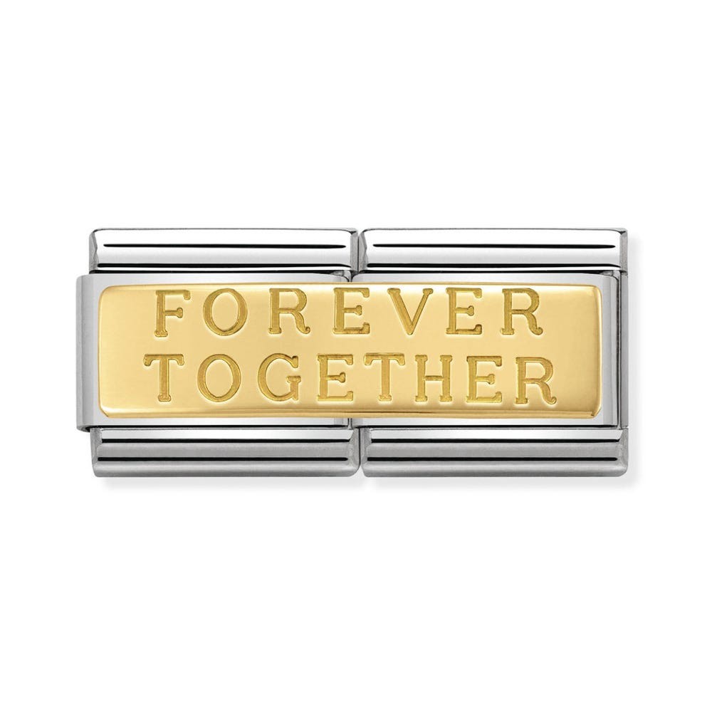 Original Nomination Double Charm in bonded yellow gold for the Composable bracelet. Made in Italy. “Forever together”. Those two words say it all! Would make an excellent Valentine's Day or Wedding Anniversary gift.