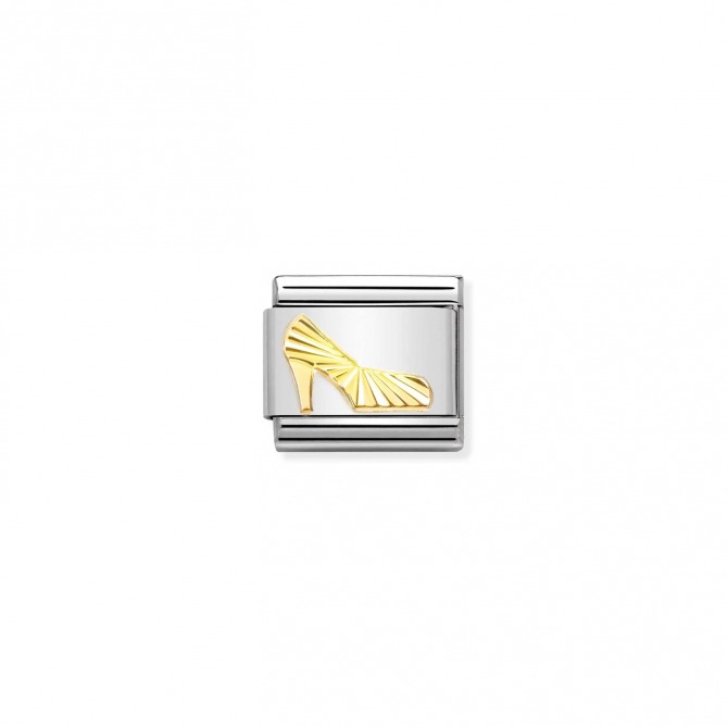 Original Nomination Classic Link in stainless steel and 18K yellow gold with Shoe with Etched Detail. Made in Italy. A symbol with etched details to reflect light and enhance the brilliance of your jewellery.