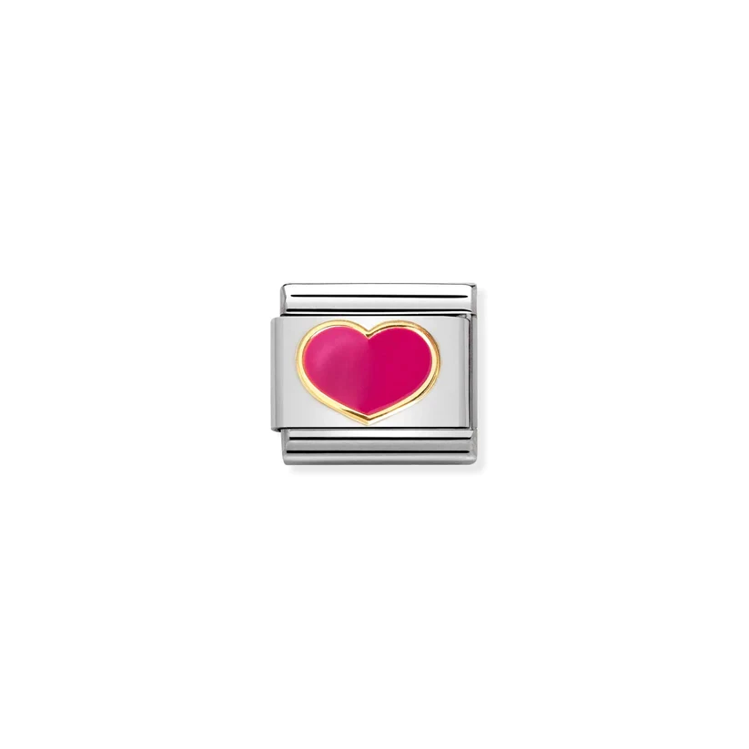 Original Nomination Classic Link in stainless steel and 18K yellow gold with Heart symbol with Fuchsia enamel. Made in Italy. This new edition of the Composable ClassicGold Collection has lively and colourful Links - choose your favourite symbol.