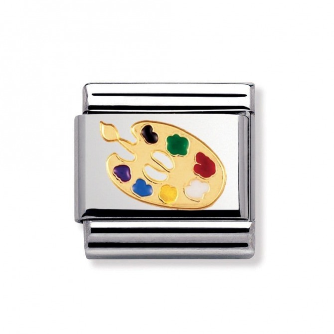 Original Daily Life Charm for Nomination's Composable Classic Bracelet with Artist's Palette symbol in bonded yellow gold, stainless steel and colourful enamel. Made in Italy. Add your passions to your bracelet.