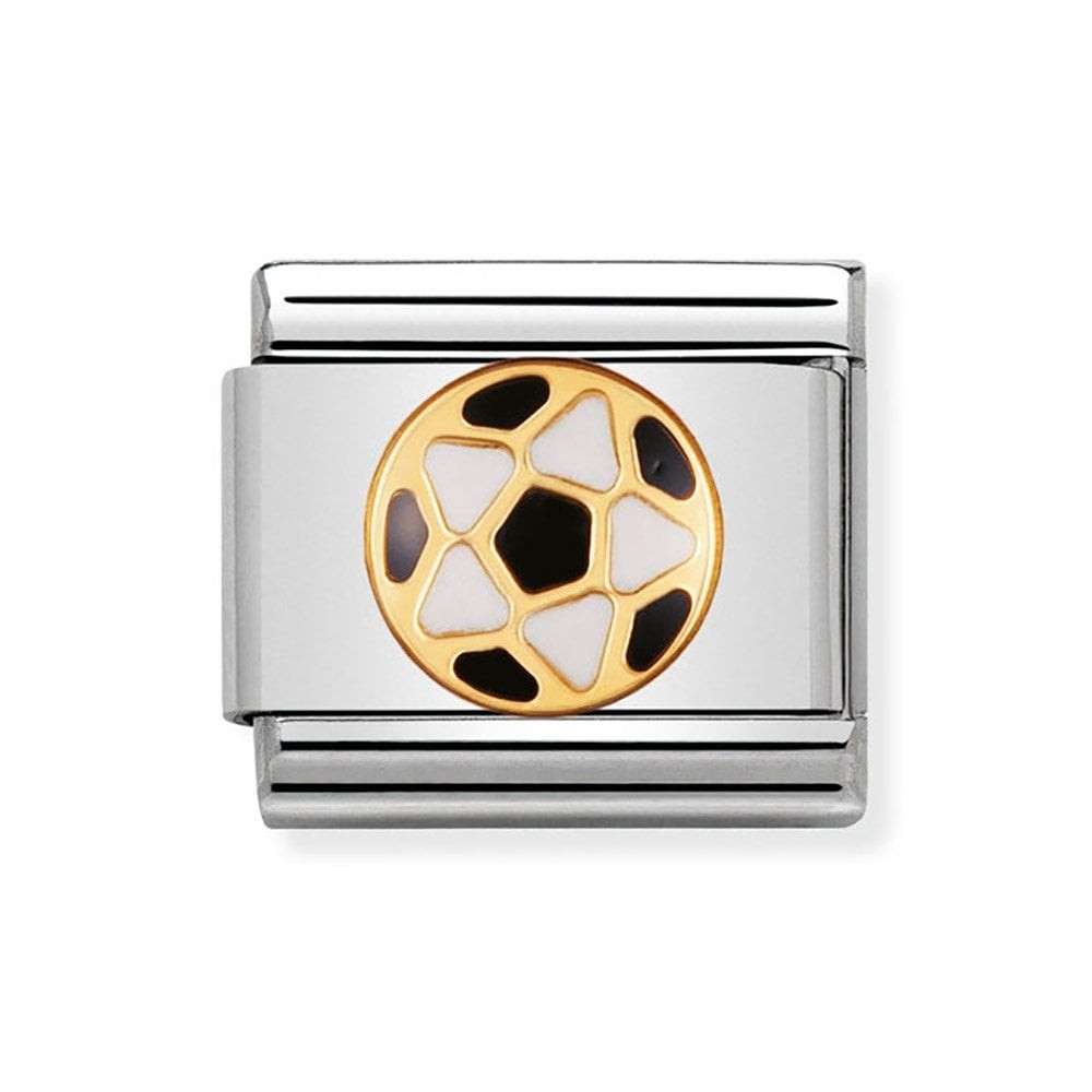 Original stainless steel Charm for Nomination's Composable Classic Bracelet with details in bonded yellow gold and enamel. Football/Soccer symbol. Made in Italy. The perfect gift for the football fan in your life!