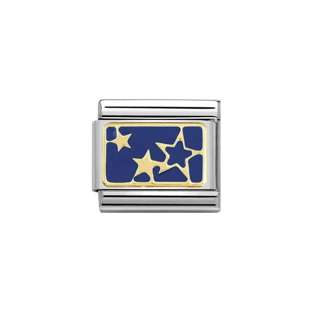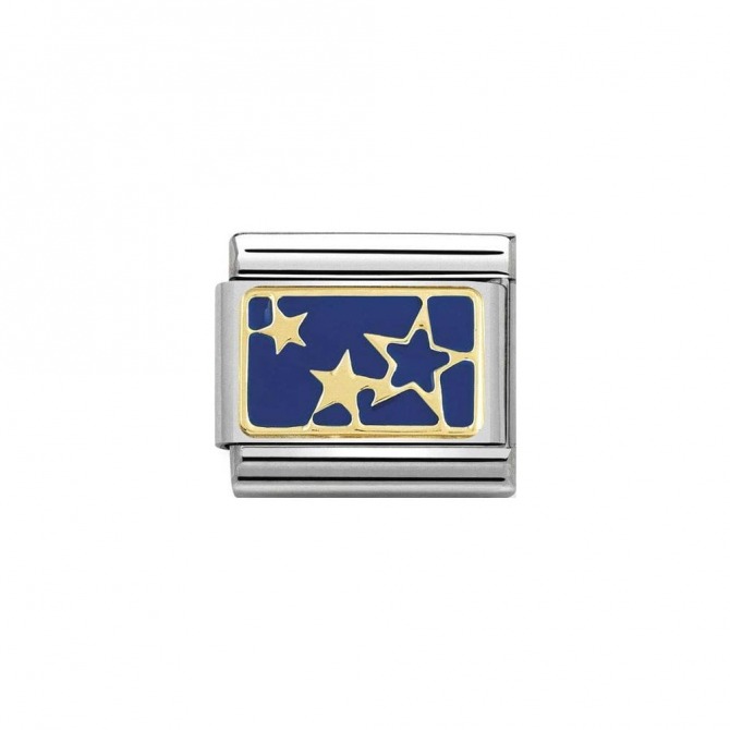 Link for Original Composable Classic Bracelet in Stainless Steel with Stars Blue symbol in bonded yellow gold and blue enamel background. Made in Italy. The perfect Link for your friend to make a wish upon a star and make a dream come true!