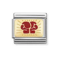 Charm for the original Composable Classic bracelet in stainless steel, bonded yellow gold and enamel. Made in Italy. Never lose a fight in the ring with this Charm on your bracelet.