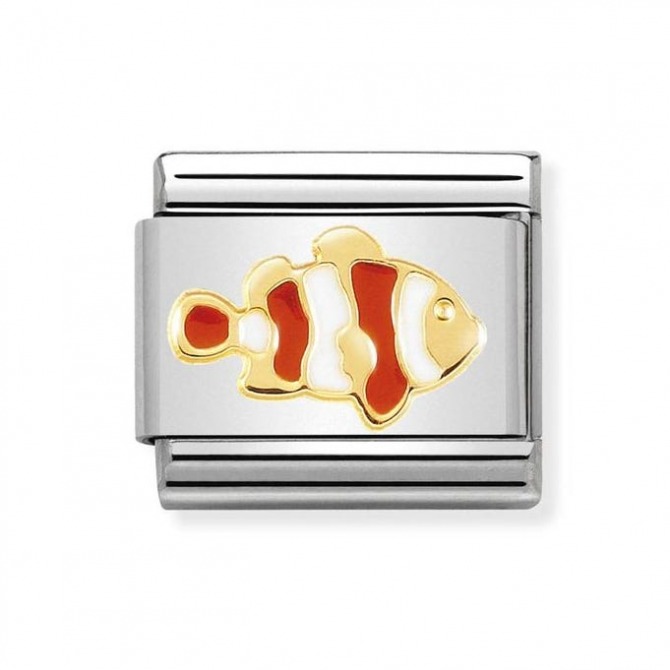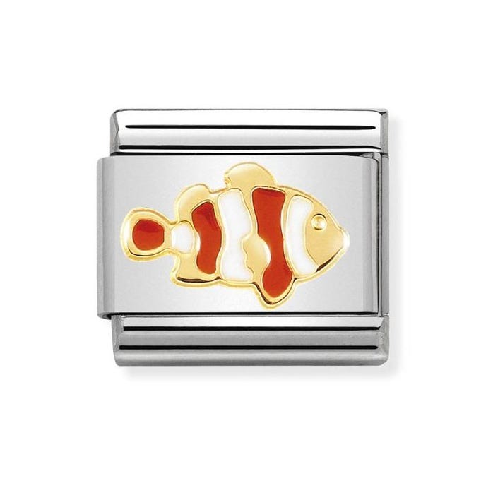 Original link for bracelet with Clownfish Symbol in bonded yellow gold and enamel. Made in Italy. The perfect link for Clownfish lovers and divers alike!