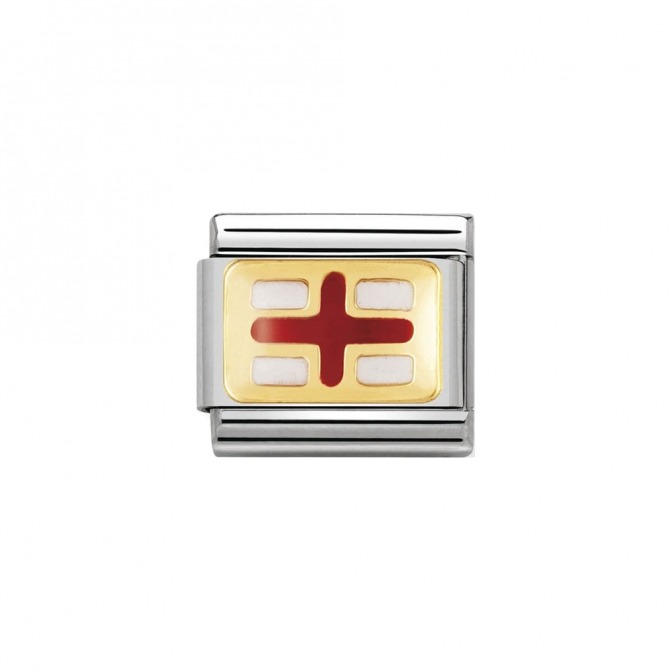 Original stainless steel Charm for Nomination's Composable Classic Bracelet with details in bonded yellow gold and enamel. Symbol of England Flag. Made in Italy. Perfect for anyone who loves to travel.