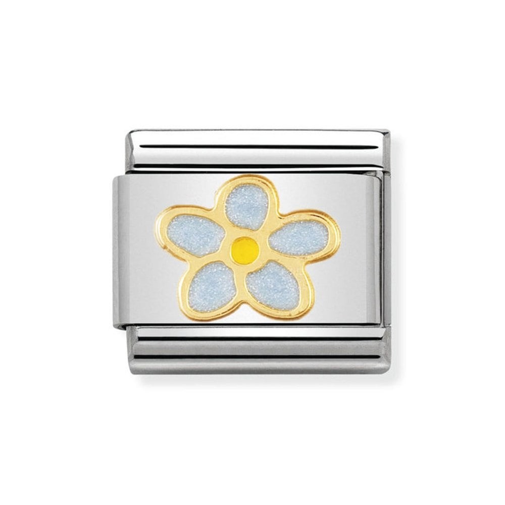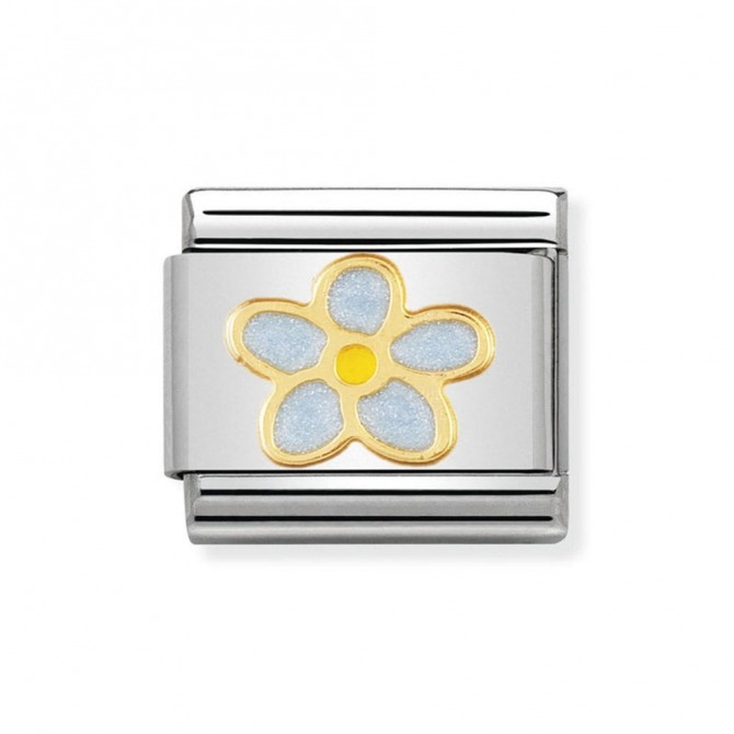 Original stainless steel Charm for Nomination's Composable Classic Bracelet with details in bonded yellow gold and enamel. Flower symbols. Made in Italy. Remember a good friend with a beautiful Charm.