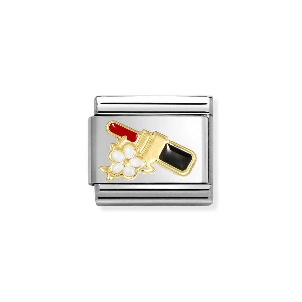 Original Nomination Composable Classic Link for Composable bracelet in stainless steel with bonded yellow gold Red Lipstick symbol with Flower, with Red, Black and White enamel. This is the ideal Link for Beauty, Makeup and Skincare Lovers, and is a great way to add a touch of lively colour to their day. This is the perfect way to add a touch of beauty to every day with striking colours and curated details.