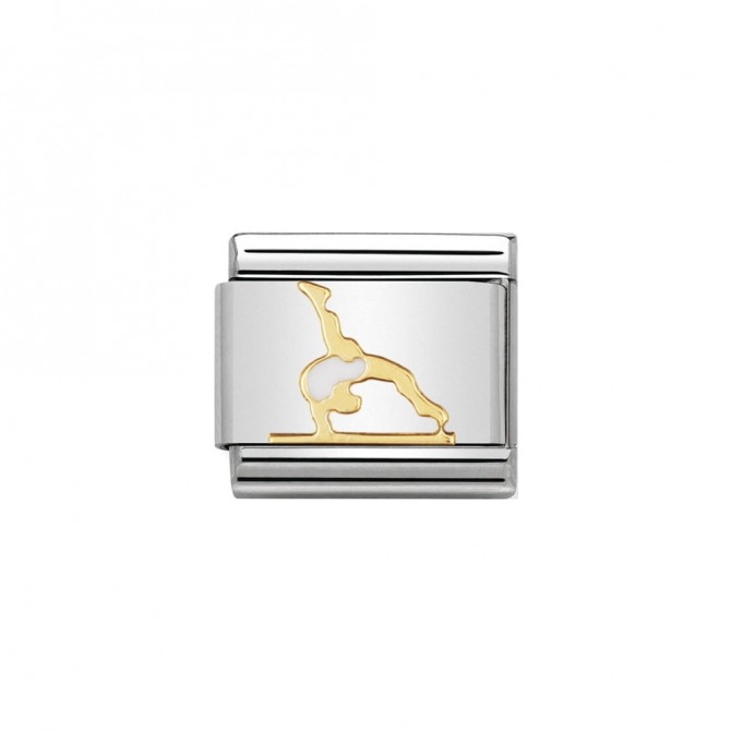 Original stainless steel Charm for Nomination's Composable Classic Bracelet with details in bonded yellow gold and enamel. Sports symbols: Gymnastics. Made in Italy. Show your love of gymnastics with a special Charm.
