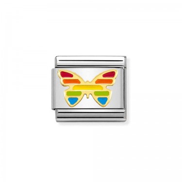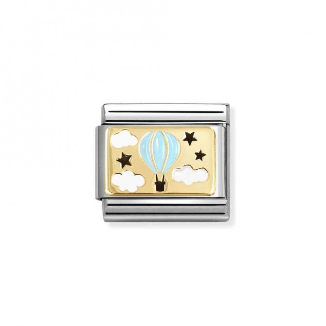 Nomination Original Charm for Classic Composable Bracelet with Hot-Air Balloon symbol in stainless steel, with bonded 18ct yellow gold and black, blue and white enamel. Made in Italy. The perfect jewel for a true dreamer.