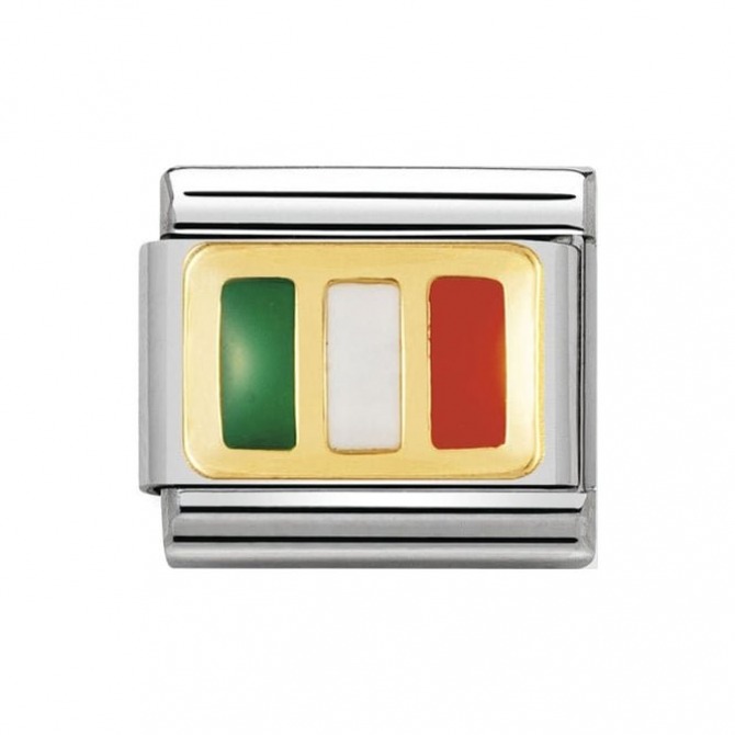 Original Charm in stainless steel, bonded yellow gold and enamel for Nomination's Composable Classic Bracelet. Symbol of Ireland Flag. Made in Italy. Travel is such an enriching experience. Carry your travels with you.