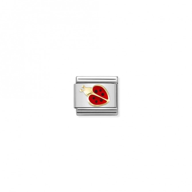 Original Nomination Link for Composable Classic Bracelets in stainless steel and 18K gold with red enamel Ladybug symbol. Made in Italy. This is a cute little animal to add to your bracelet as a good luck charm!