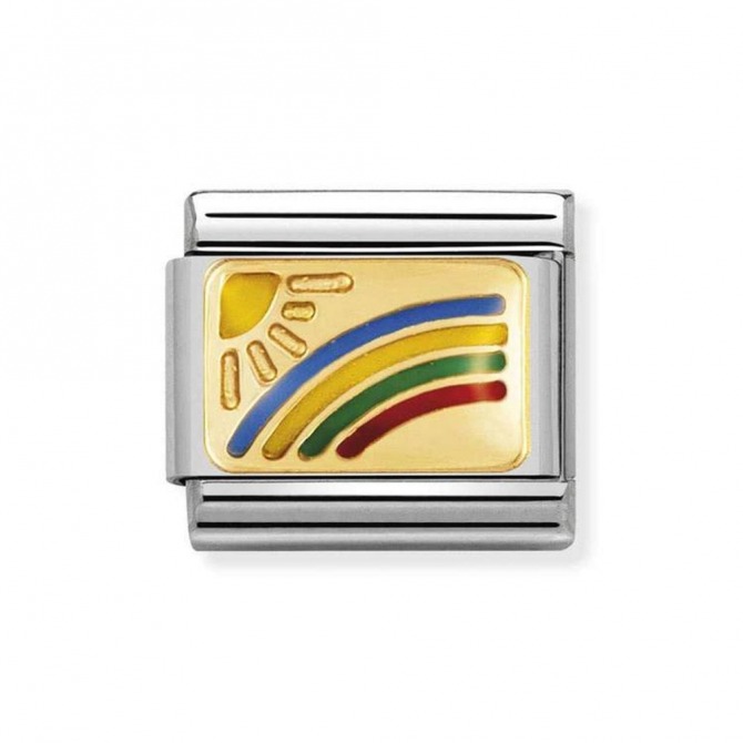 Nomination Original Charm for Classic Composable Bracelet with Rainbow symbol in stainless steel, bonded yellow gold and colourful enamel. Made in Italy. Brighten up your day with a pop of colour.