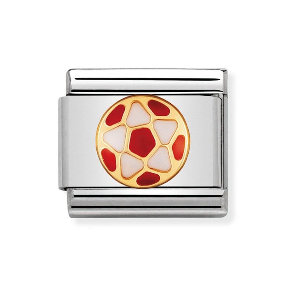 Original stainless steel Charm for Nomination's Composable Classic Bracelet with Sports Football/Soccer symbol. Details in bonded yellow gold and enamel. The Football Charm is available in several different colours. Made in Italy. Show your passion for football!